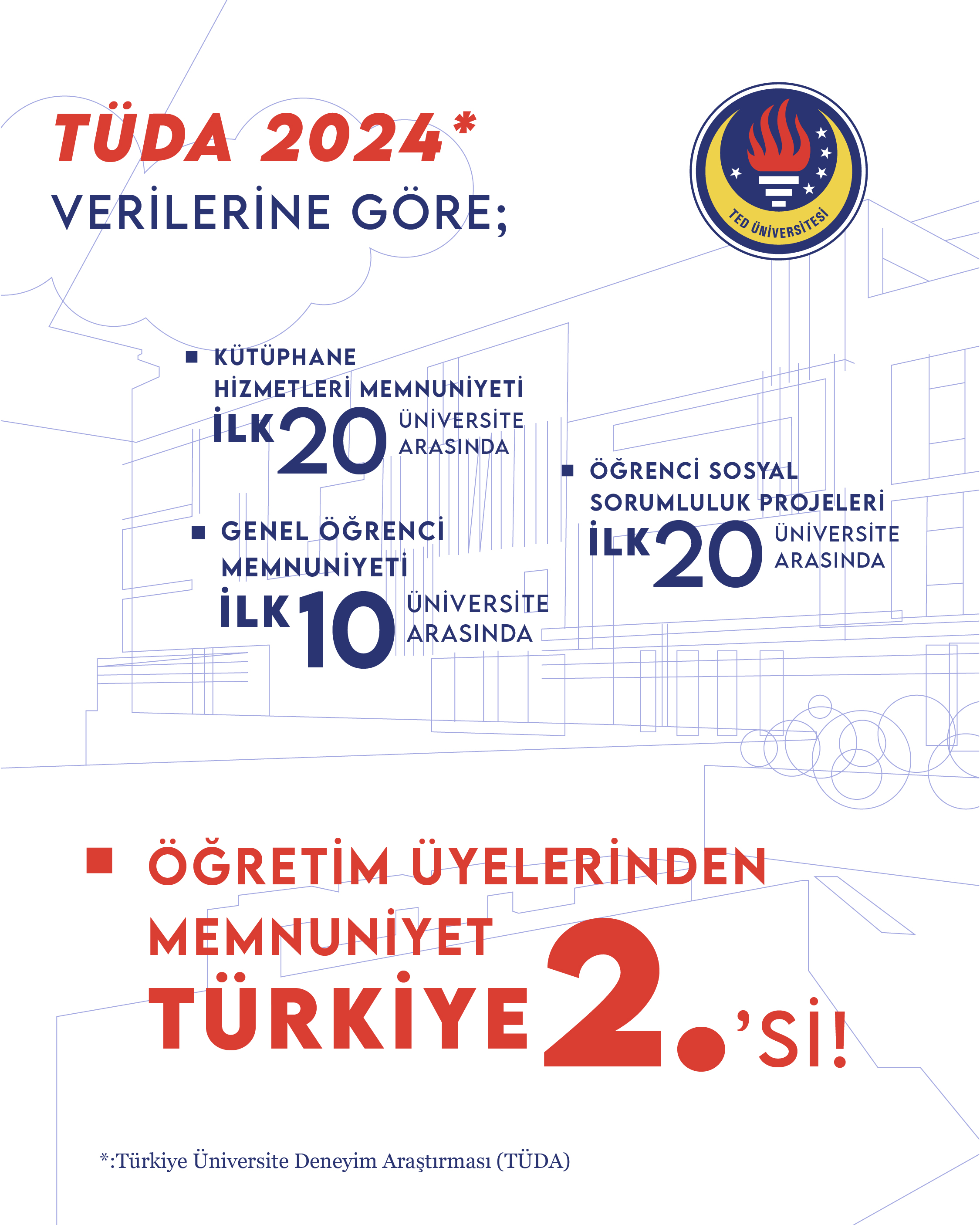 Üniversite İzleme ve Değerlendirme Genel Raporu 2025 verilerine göre TED Üniversitesi öğrencilerin yalnızca eğitim aldığı değil; aidiyet hissettiği bir üniversite!