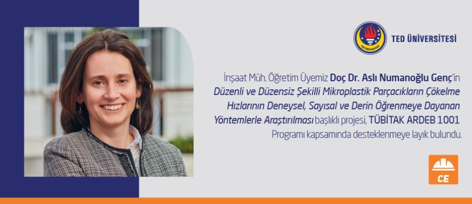 Üniversitemizin İnşaat Mühendisliği Bölümü Öğretim Üyesi Doç. Dr. Aslı Numanoğlu Genç yürütücülüğünde TÜBİTAK’a sunulan “Düzenli ve Düzensiz Şekilli Mikroplastik Parçacıkların Çökelme Hızlarının Deneysel, Sayısal ve Derin Öğrenmeye Dayanan Yöntemlerle Araştırılması” başlıklı proje, TÜBİTAK ARDEB 1001 programı kapsamında 32 ay süresince desteklenmeye layık bulunmuştur. Proje ekibinde üniversitemizin İnşaat Mühendisliği Bölümü’nden Prof. Dr. Mehmet Ali Kökpınar, Makine Mühendisliği Bölümü’nden Dr. Öğr. Üyesi Ayşe Çağıl Kandemir ve Dr. Öğr. Üyesi Onur Baş ile Bilgisayar Mühendisliği Bölümü’nden Doç. Dr. Gökçe Nur Yılmaz araştırmacı olarak yer almaktadırlar. Proje böylelikle Mühendislik Fakültesinden üç bölümü bir araya getirerek disiplinler arası bir özelliğe sahip olmuştur.