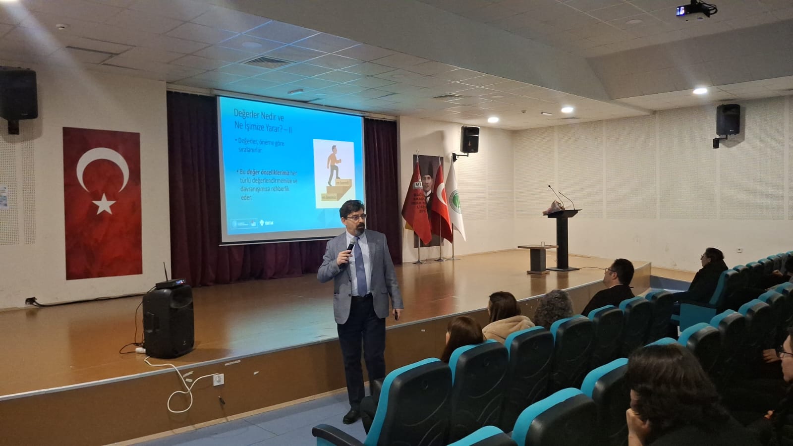 Bilimsel bilgiyi genç kuşaklarla buluşturmayı amaçlayan TÜBİTAK Bilim Söyleşileri kapsamında Eğitim Bilimleri Bölümü Rehberlik ve Psikolojik Danışmanlık Anabilim Dalı Dr. Öğretim Üyemiz Kürşad Demirutku tarafından Bağlum Şehit Yakup Çapat Anadolu İmam Hatip Lisesi'nde "Yaşamda Bize Rehberlik Eden Değerlerimiz" başlıklı seminer gerçekleştirildi.